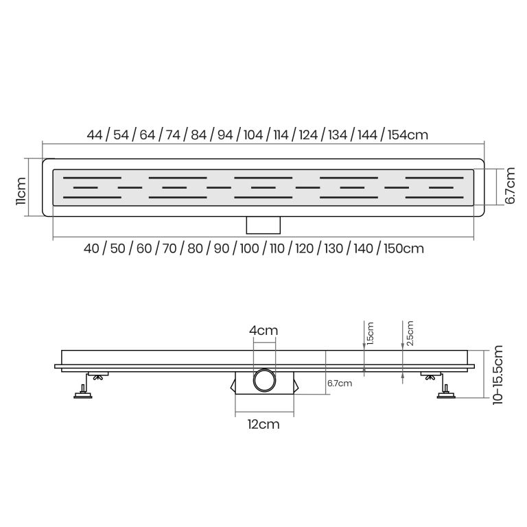 Proměňte svou koupelnu v oázu stylu a inovací díky našim vynikajícím lineárním sprchovým odtokům. Nerezová ocel nejvyšší kvality, umně kartáčovaná, v kombinaci s pískovaným hlavním tělem. Design vaší koupelny si zaslouží něco výjimečného, proto jsou naše sprchové odtoky navrženy tak, aby nejen zaujaly, ale také inspirovaly svou odolností. Díky zapuštěnému povrchovému materiálu vám zaručujeme výrobek, který obstojí ve zkoušce času. Instalace je rychlá, nekomplikovaná a bez nutnosti použití baterií. Mysleli jsme na vše, abyste se mohli bez obav soustředit na to podstatné. Vylepšete tvar a funkci svého sprchového koutu pomocí našeho elegantního a odolného lineárního sprchového odtoku, který dodá vaší každodenní rutině sofistikovanost.