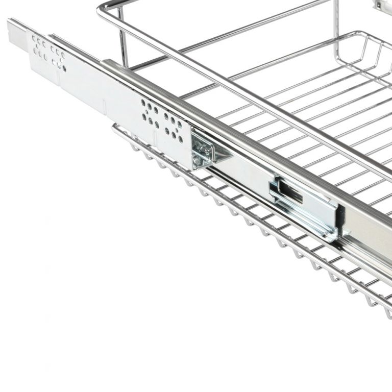 Tato zásuvka zajišťuje pořádek nejen v kuchyňské skříni, ale využití naleznete také v ložnici, v obývacím pokoji a mnoho jiné. Díky své teleskopické funkci ji lze snadno vytáhnout a zasunout zpět. Je zde prostor pro potraviny, domácí potřeby a mnoho dalšího. Naše zásuvky vyrobené z robustního pochromovaného kovu s maximální nosností 20 kg usnadní uspořádání předmětů v zásuvce.