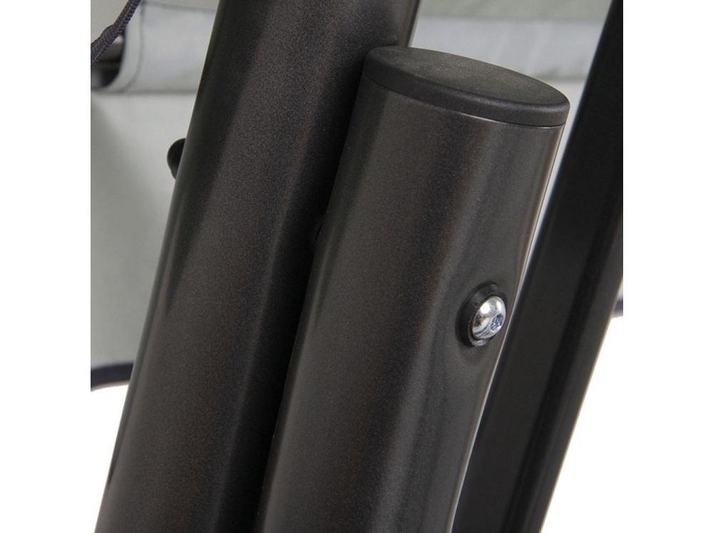 Robustní, výkonná konstrukce houpačky, tloušťka nosné trubky: Ø 63 x 1,5 mm. Rám malovaný práškovou polyesterovo-epoxidovou barvou v antracitovém odstínu. Sedadlo je možné sklopit do polohy vleže na zádech. Stříška na houpačku Venezia s moskytiérou- vyrobena z polyesteru, má speciální tunely přizpůsobené ke střešní konstrukci houpačky. Barva stříšky: světle šedá. Moskytiéru lze odepnout.